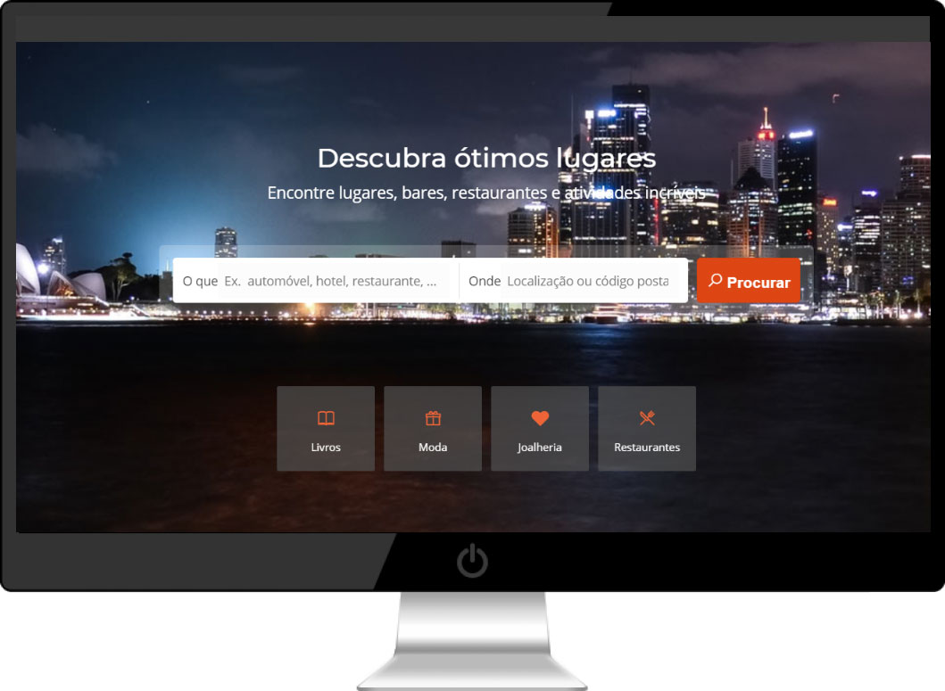 Pesquisa avançada por cidade, código postal, anúncios, categorias e outras opções.